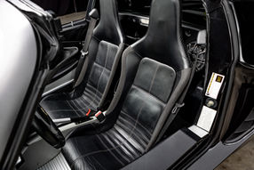 The chassis setup is a double wishbone suspension at all four corners, paired with Eibach springs and Bilstein dampers. This configuration, combined with a lack of power steering, offers unfiltered, highly communicative steering feel that’s become legendary among enthusiasts. Braking is handled by AP Racing calipers in the front and Brembo units in the rear, clamping down on vented and cross-drilled discs — more than sufficient considering the car’s featherweight build.