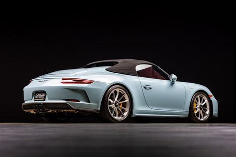 We believe this is the only 911 Speedster in Paint-to-Sample Meissen Blue, a famous Porsche 356 color. With an original MSRP of $361,915, it included $52,685 in special wishes interior appointments. WIth only 100 miles on the odometer, this is literally a 'new' 2019 Speedster.